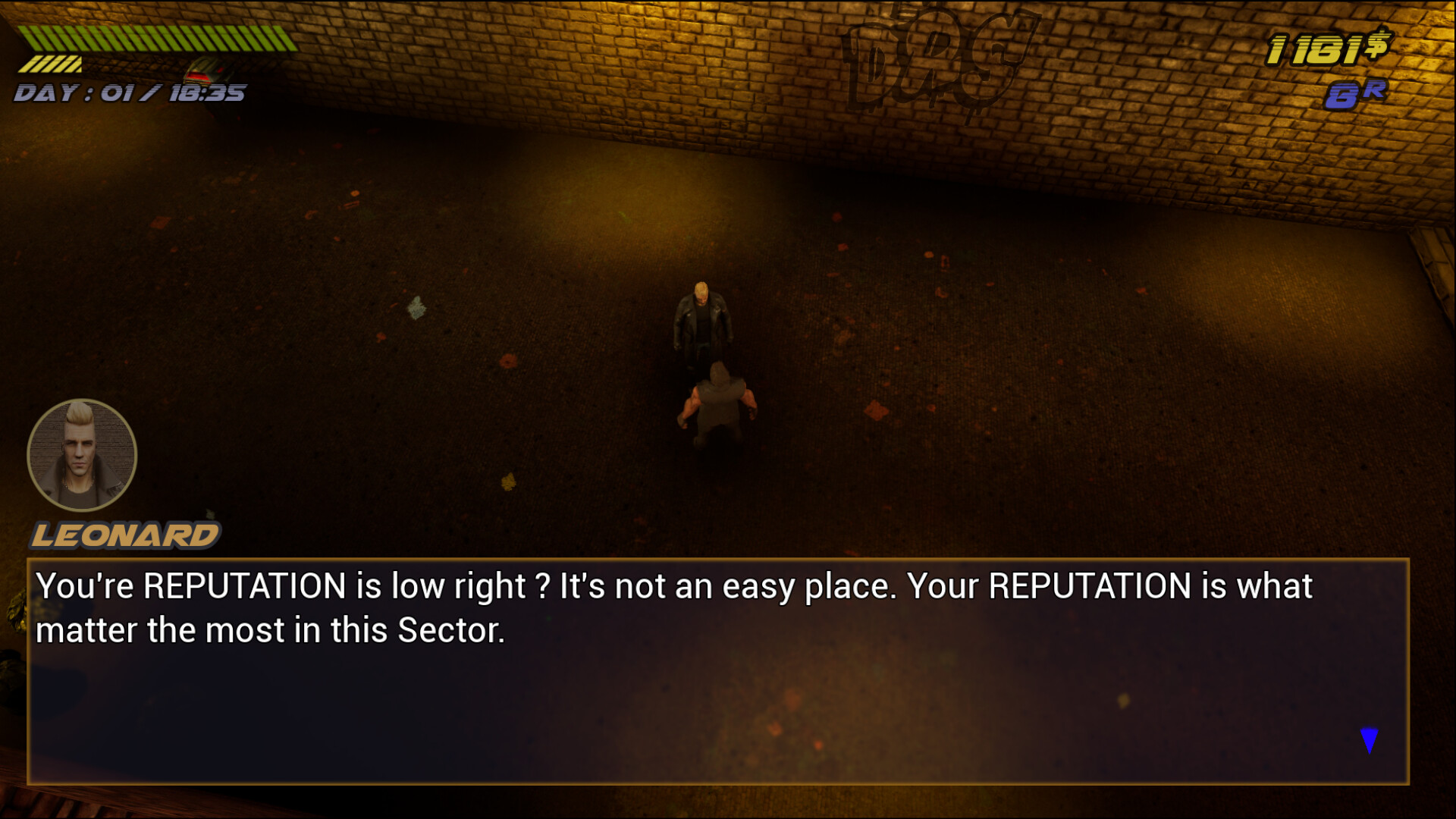 Fight against several fighters to gain reputation and money. Some fighters can give clues to the mysterious humanoid hiding among the residents.