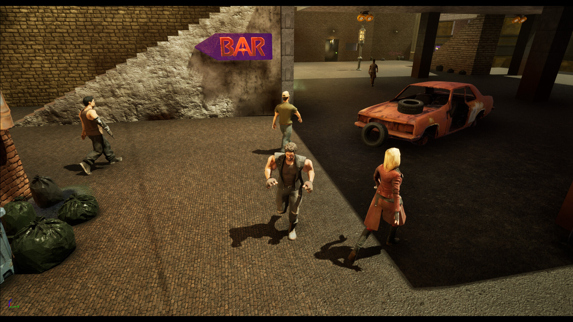 Fight against several fighters to gain reputation and money. Some fighters can give clues to the mysterious humanoid hiding among the residents.