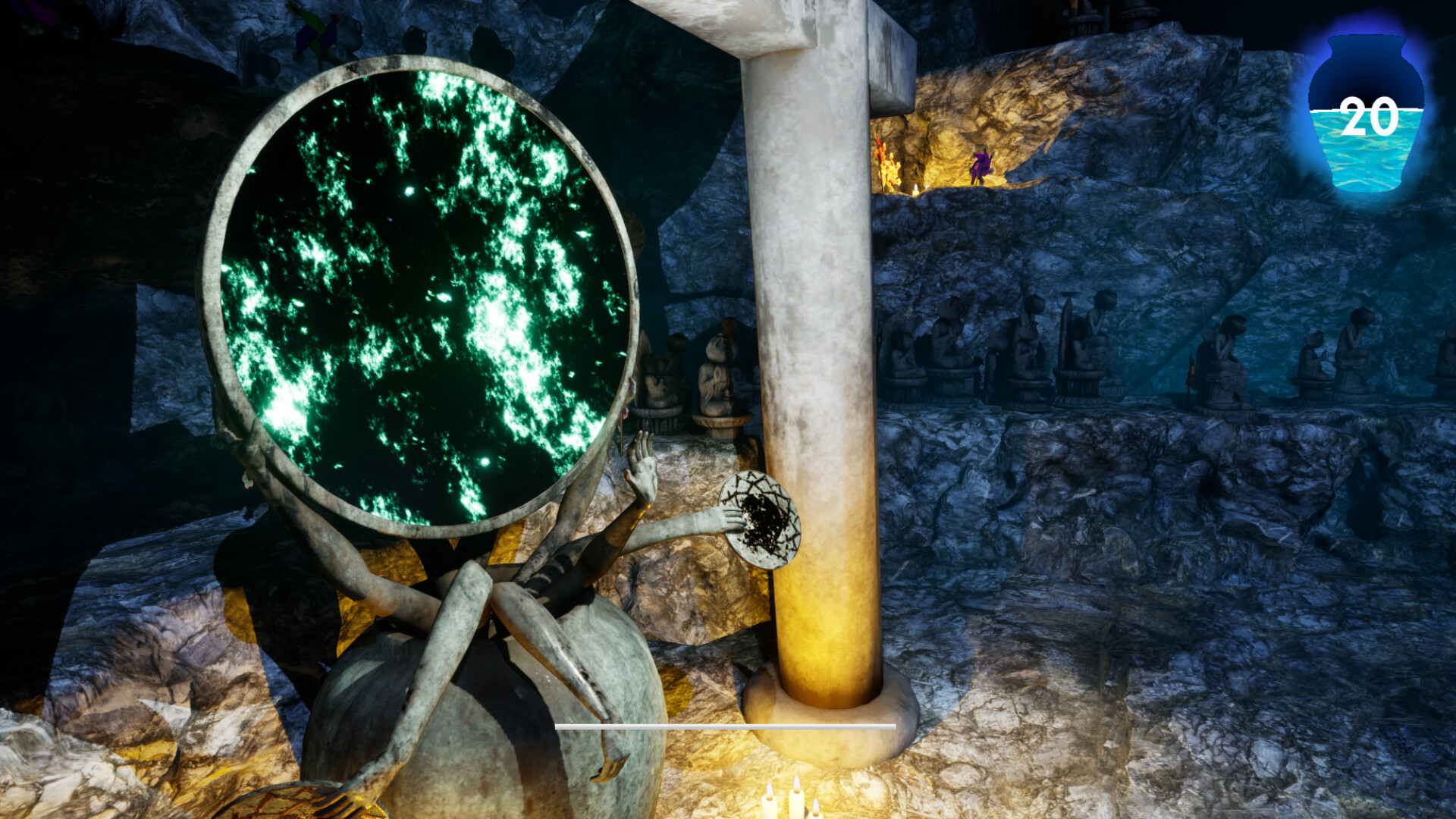 The pot you carry can be thrown once you have collected a certain number of souls. This allows you to divert an enemy's attention or press buttons to open doors above you.