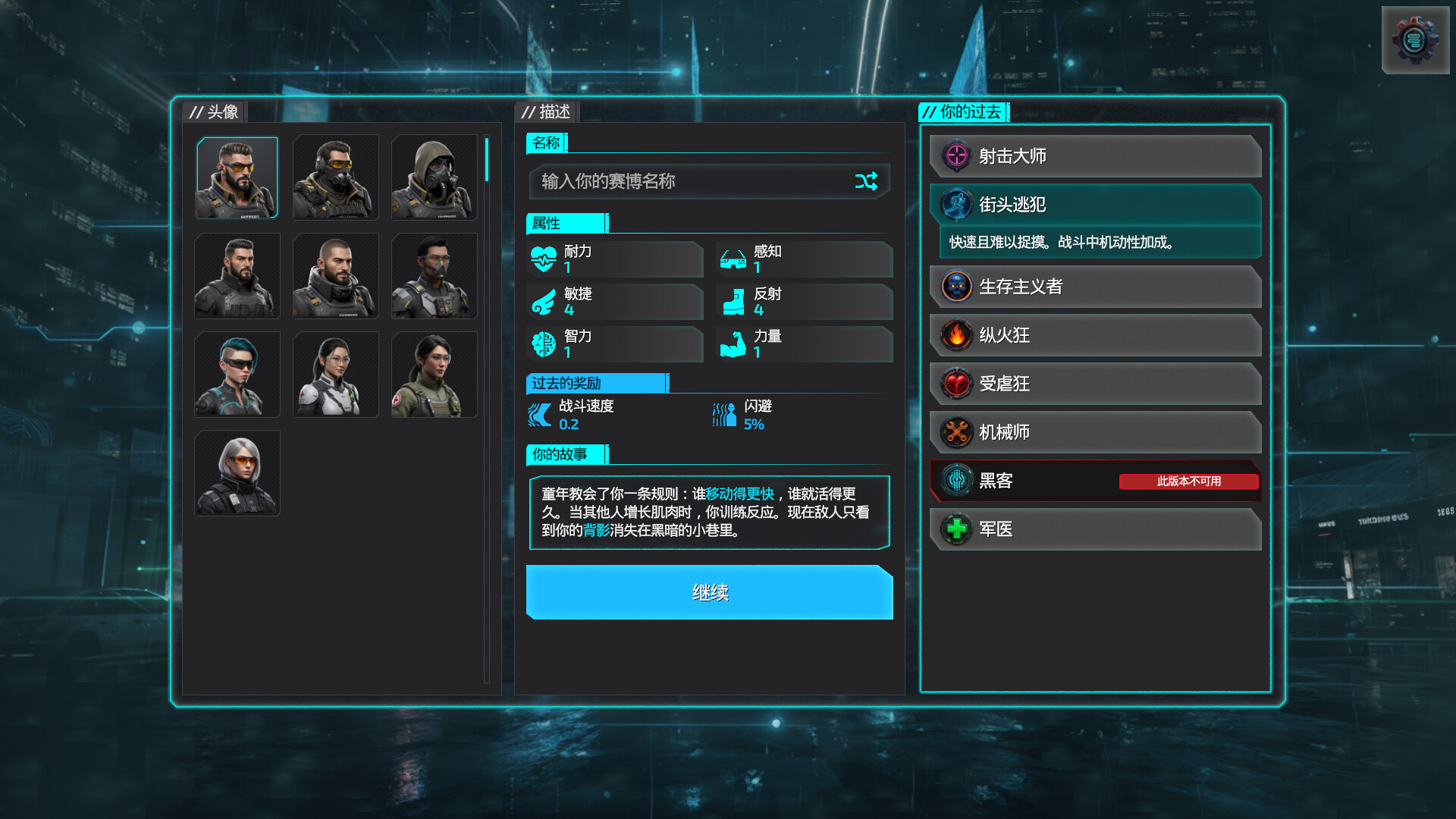 • 植入与改造构建 - 肉体 + 武器 + 软件, 无刚性职业