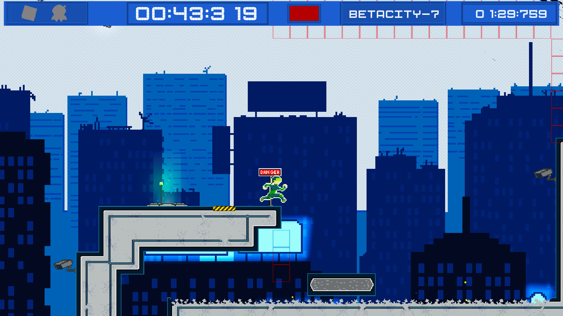 • Precise 2D platforming mixed with fast-paced parkour, set in a retro atmosphere.