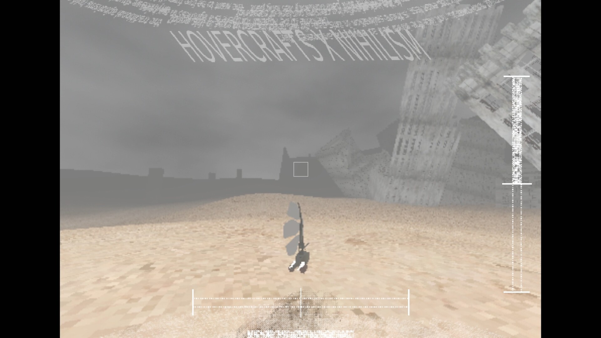 hovercrafts x nihilism is a vehicular shooter set in a post apocalyptic world devastated by war and natural disasters. You play as a one of the few remaining humans on the world, exploring what remains and who inhabits the ruins of the earth.