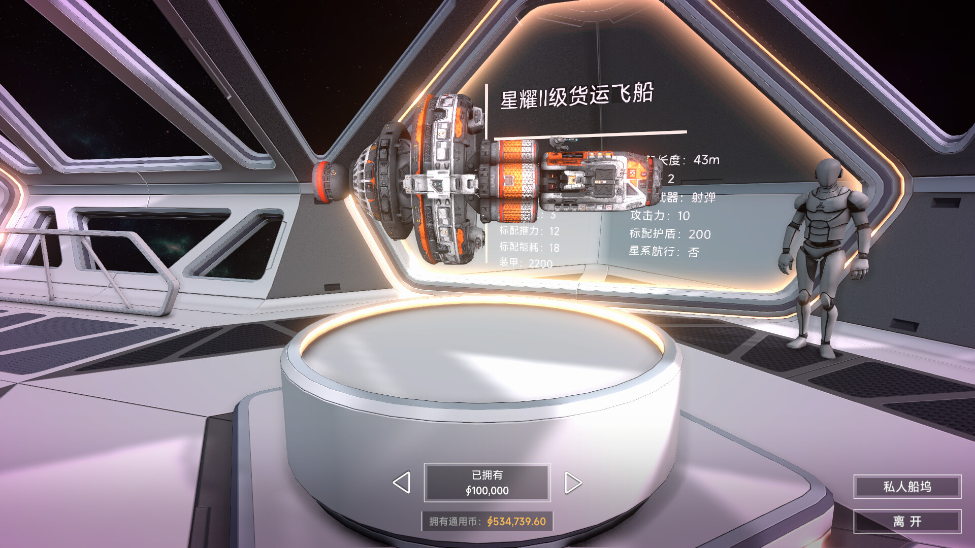你将单枪匹马从一艘小型货运飞船开始,到大型运输飞船,再到堪比一座城市大小的巨型货运母舰。你需要雇佣更多的人手,妥善装配你的飞船,让它能够应对长途跃迁、极端宇宙环境、星际海盗、以及突发事件等一些列危机。
