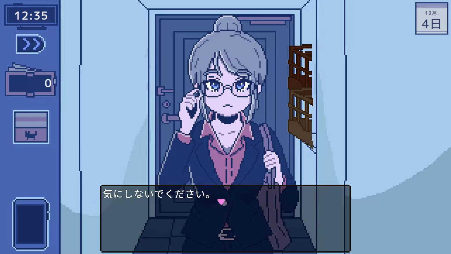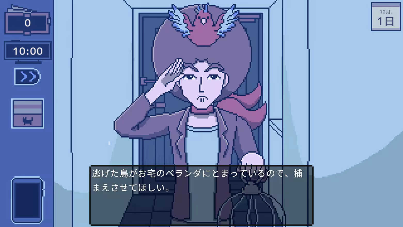 A wide variety of people will appear at your door: a drunken woman, a man searching for his lost pet bird, a neighbor suffering from domestic abuse, and more. The story unfolds as you dare to involve yourself with these odd, eccentric, and sometimes dangerous visitors.