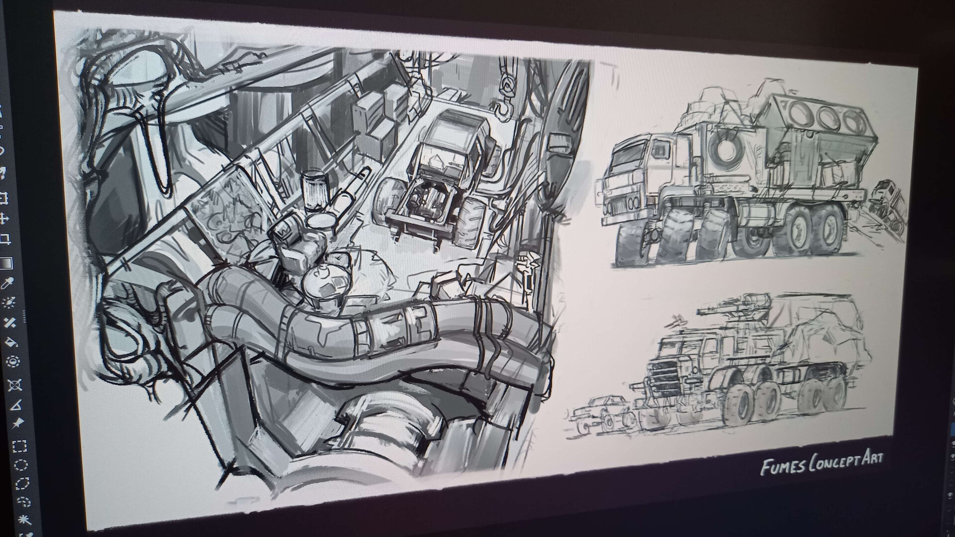 • FUMES Art Book full of concept arts and silly ideas that are not (yet?) in the game.