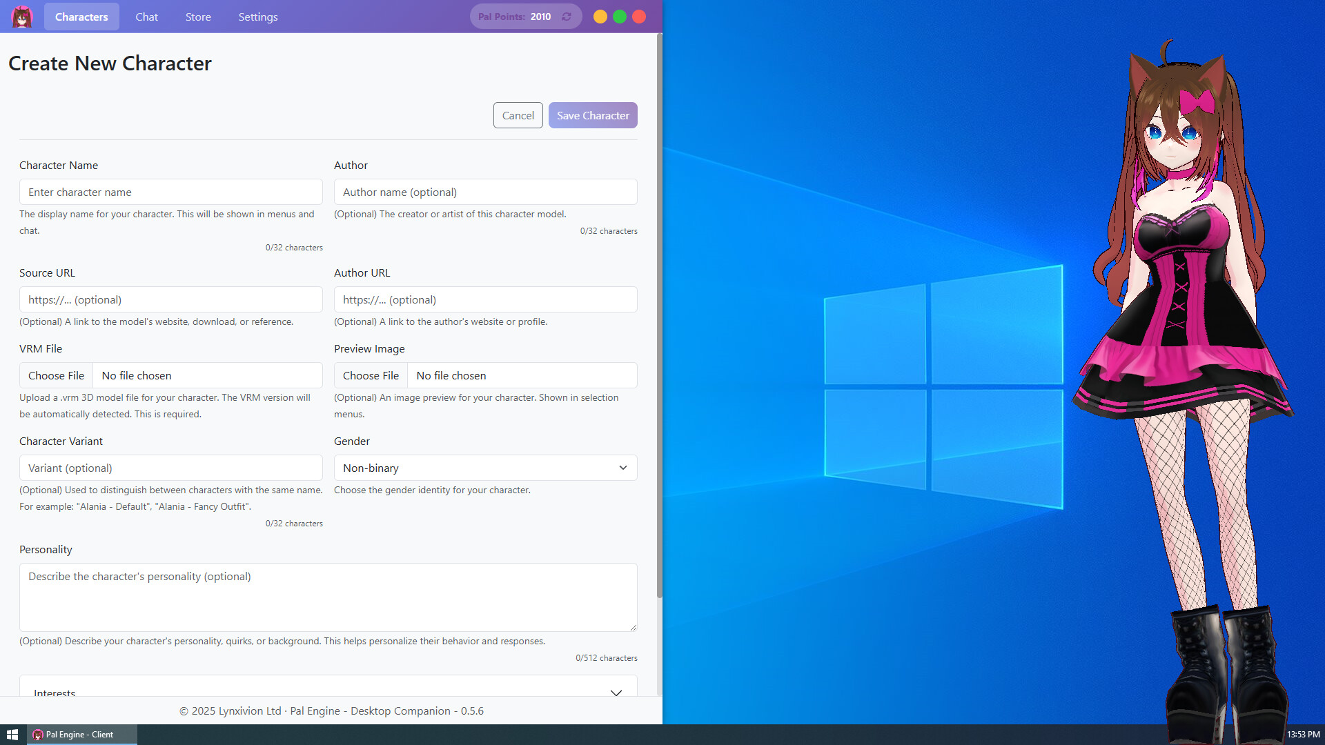 Pal Engine is a 3D desktop companion app with customizable VRM characters. Import your own or use built-in ones, define personality and behavior, chat with AI, and enjoy animations. Built with community feedback, it brings life, utility, and personality to your desktop.