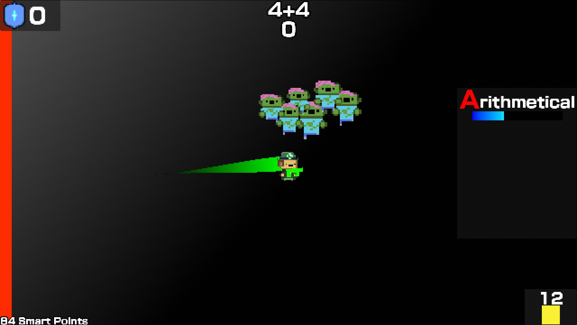 Math and Guns is a top-down shooter where solving math problems is used to reload your guns. Play as a dubiously colored bounty hunter as you fight against generic monsters with fully automatic arithmetic, or just solve math problems and be boring, that's also an option.