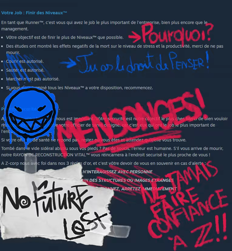 Z-CORP™ RECRUTE! Titre du poste: Runner™ / Durée: CDI. Skills Needed: Good Parkour abilities, strong stamina, complete obedience to authority. Compétences demandées : Bonne endurance, skills de Parkour, respect total et aveugle de l'autorité Merci d'installer le jeu pour postuler. - Z