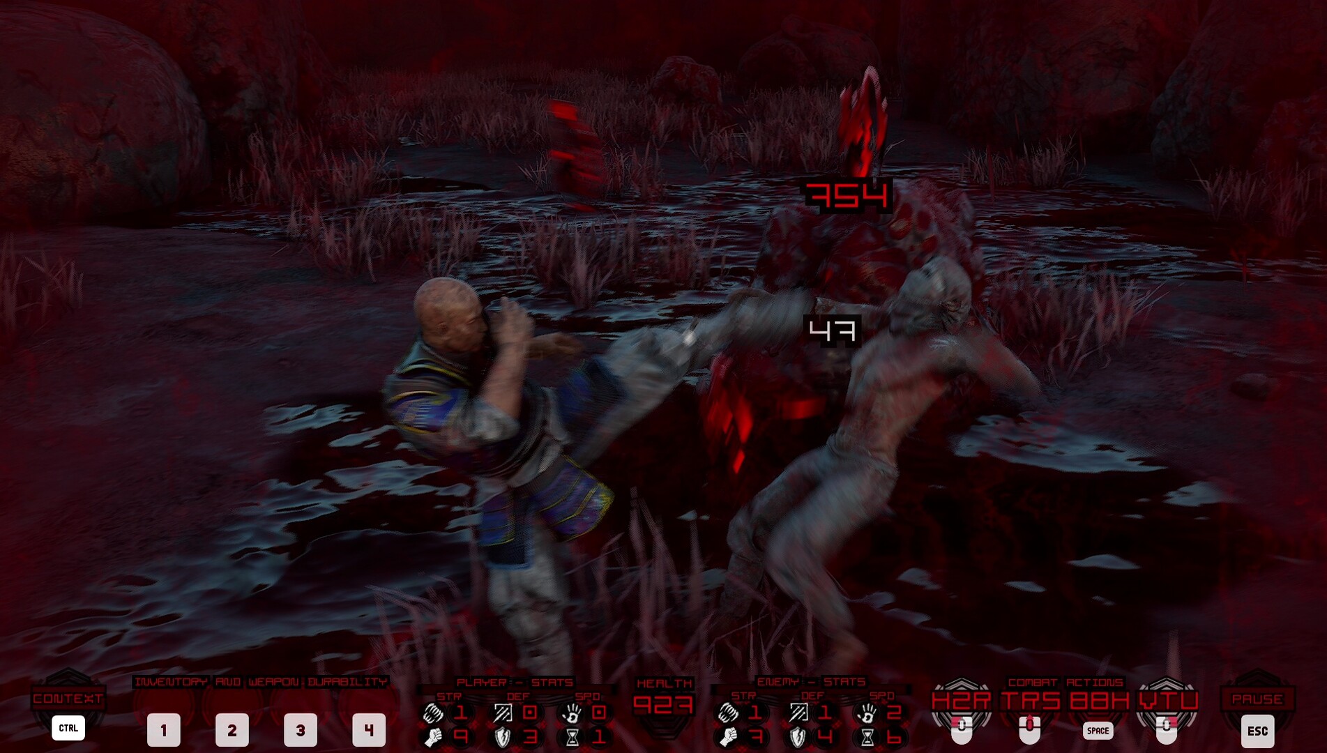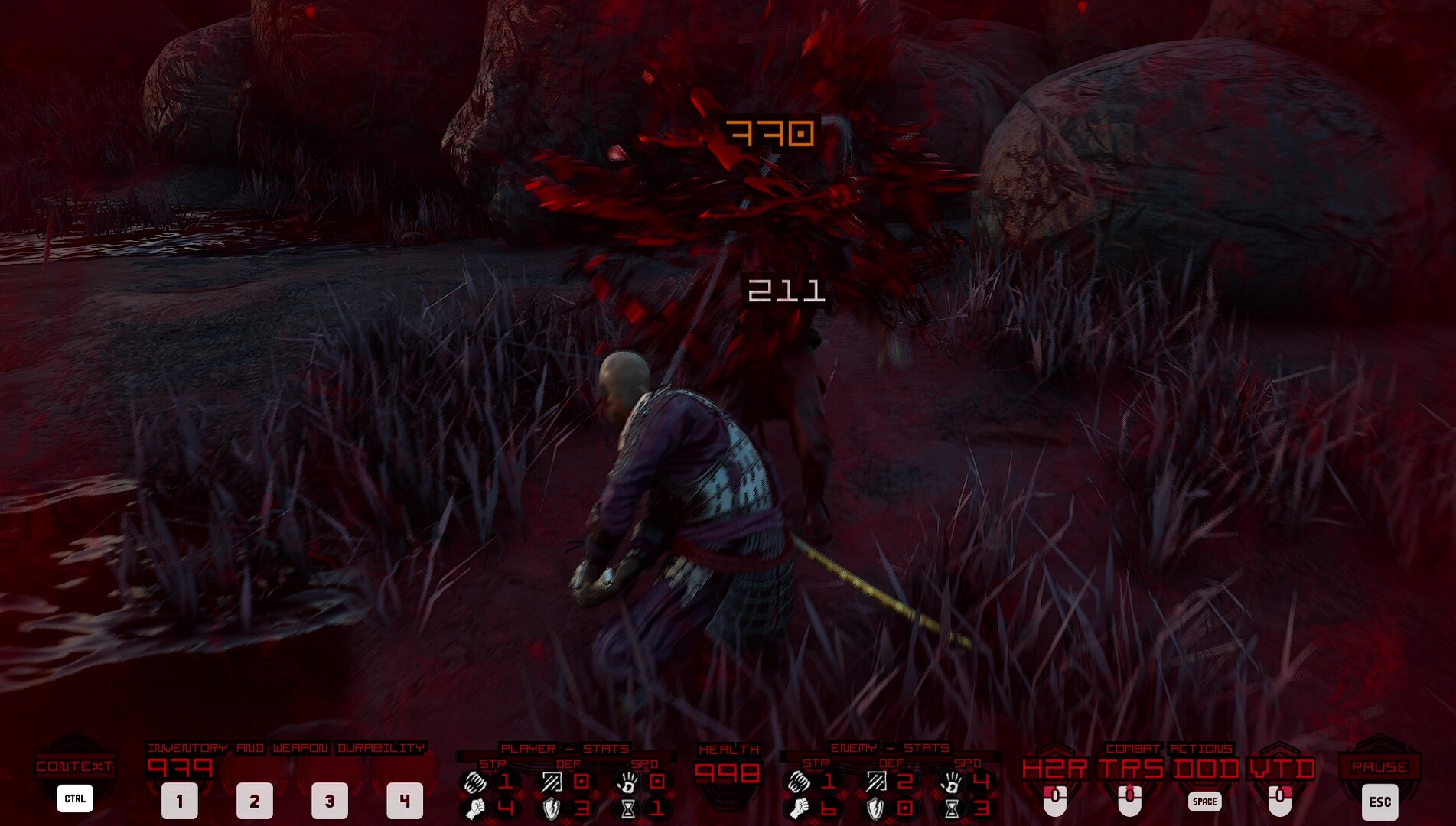 • each sword has 2 movesets, one for each hand, created semi-random: experiment!