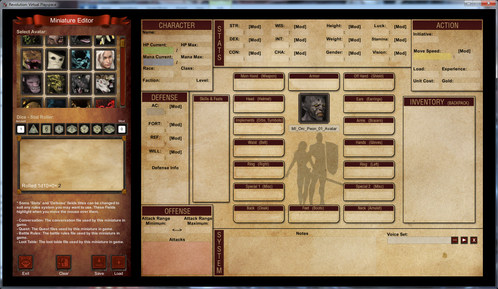 • Miniature Editor (Create your characters, monsters, stats, units)