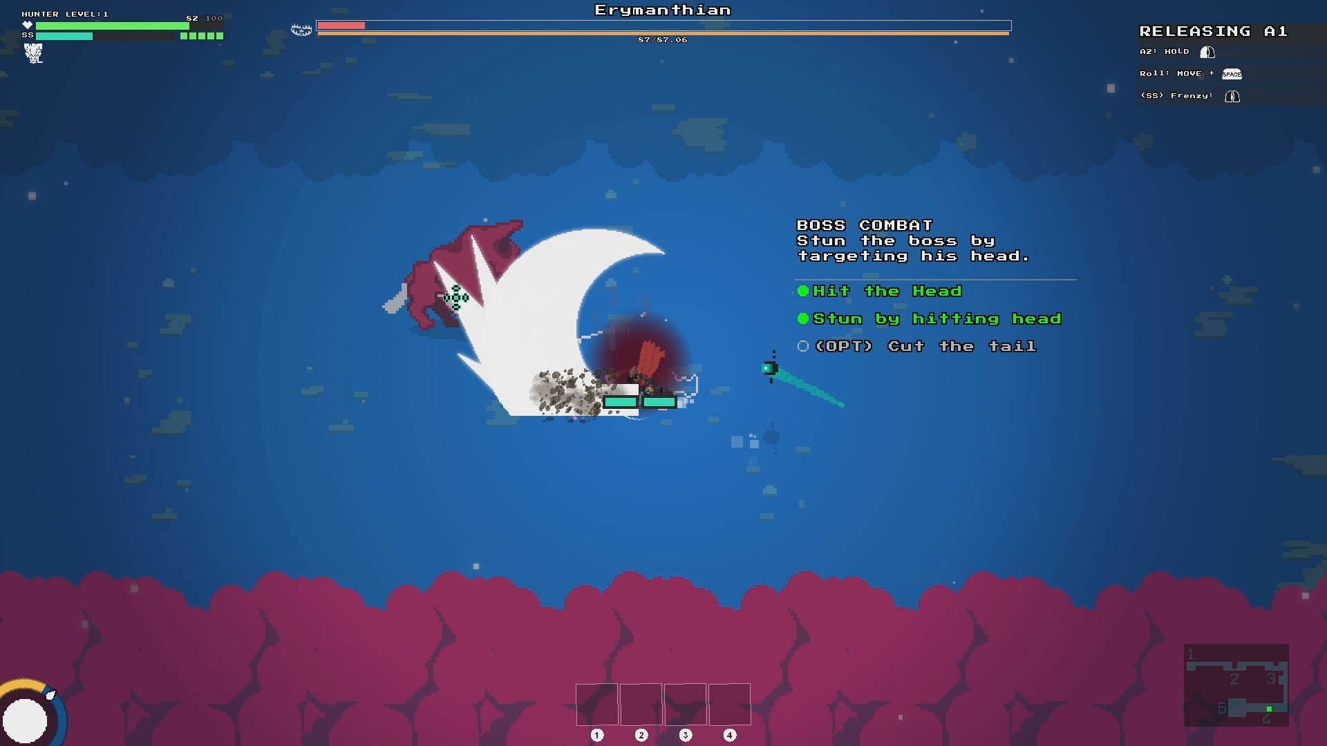 은하계 현상금 사냥꾼인 Harakin을 조종해, 플레이어는 거대하고 도전적인 생물을 사냥하기 위해 먼 행성을 탐사한다. 탑다운 2D 시점으로, 전략과 날카로운 반사신경을 요구하는 강렬한 전투를 제공한다.