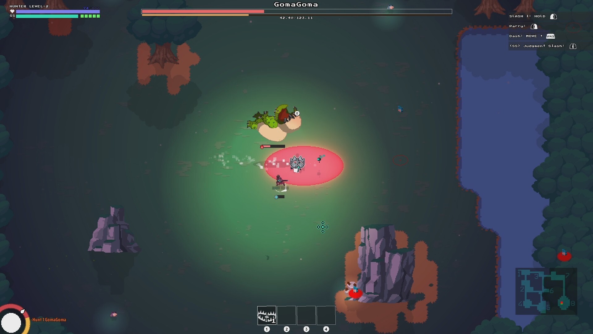 The Harakin, an intergalactic bounty hunter, the player explores distant planets to hunt colossal, challenging creatures. With a top-down 2D perspective, the game delivers intense combat that demands strategy and sharp reflexes.