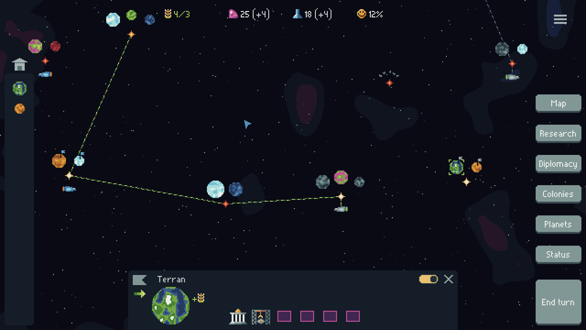 Do your people grow weary of war? Sue for peace with an adversary. Running low on resources? Offer to sell some scientific knowledge. Once you discover alien civilizations and learn how to communicate with them, trade and negotiation create new opportunities for growth.