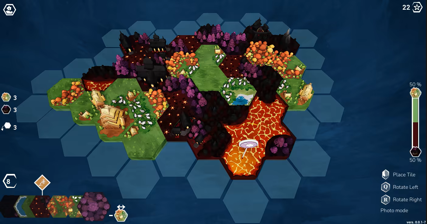 Connect hexagonal tiles to grow distinct biomes. Will you manage both landscapes in harmony, or pour your focus into one? Every approach leads to a unique outcome.