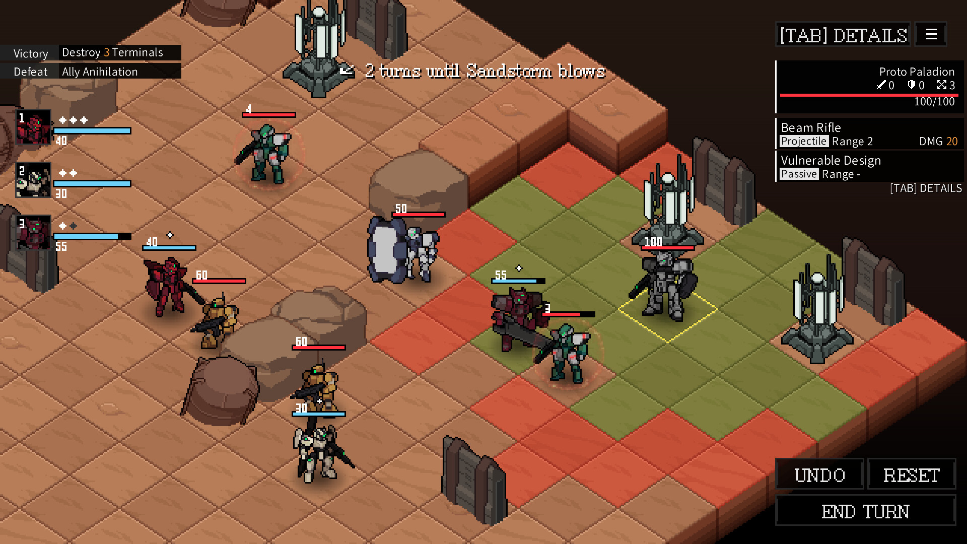 Rhea of the Remnant is a mech Tactical RPG in which you command a small number of allies to defeat a large number of enemies.