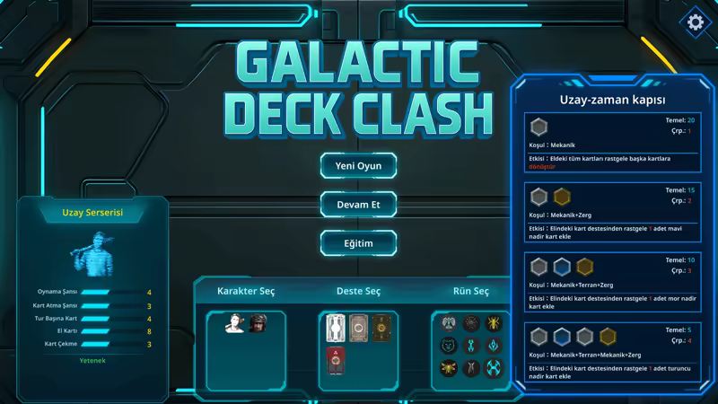 Bu oyun, uzay temalı bir deste oluşturma roguelike oyunudur. Kartlar topla, farklı ırkları yönet ve sayısız kombinasyonu keşfet. Kart etkilerini özgürce değiştir, ekipman ve rünlerle kendini güçlendir, güçlü düşmanlara tekrar tekrar meydan oku.