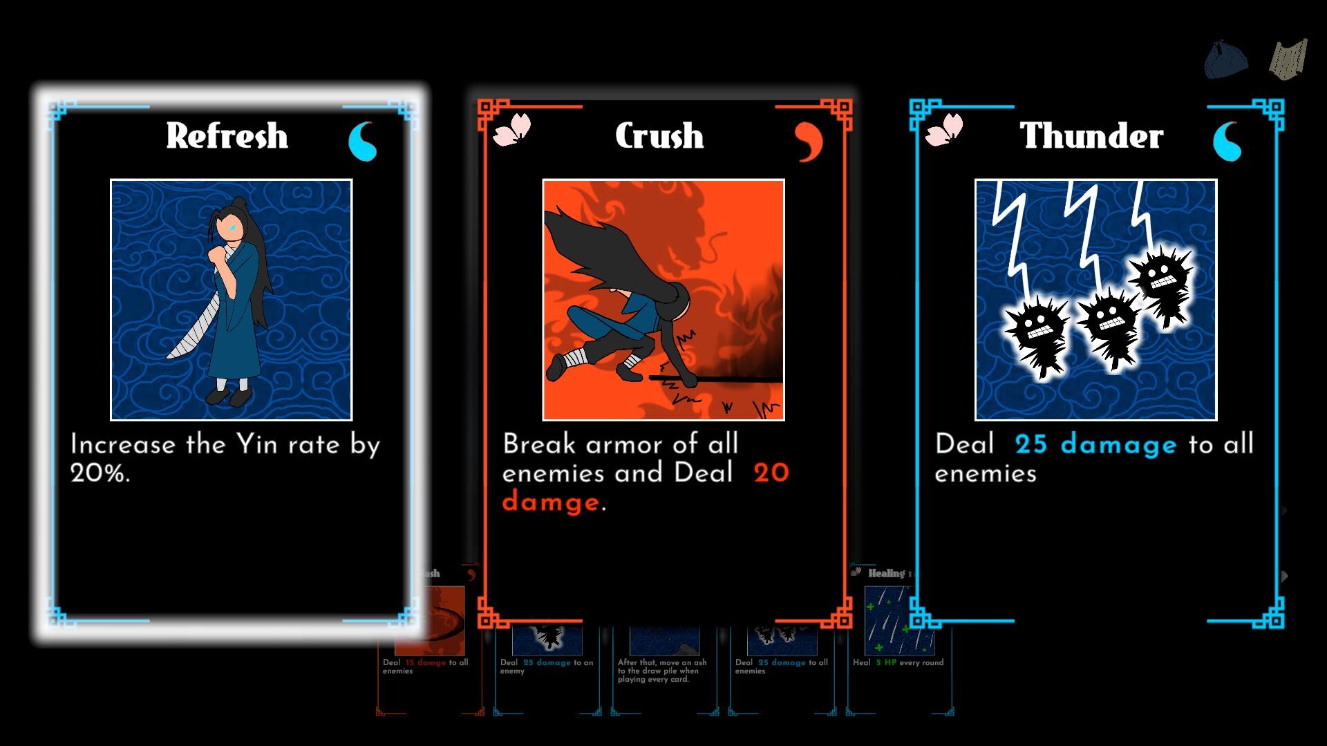 When players use cards or take damage from enemies, they gain corresponding Yin or Yang values. Once the ratio reaches 70:30, players enter either the "Silence" (Yin-dominant) or "Violence" (Yang-dominant) state, receiving bonus healing and increased damage.