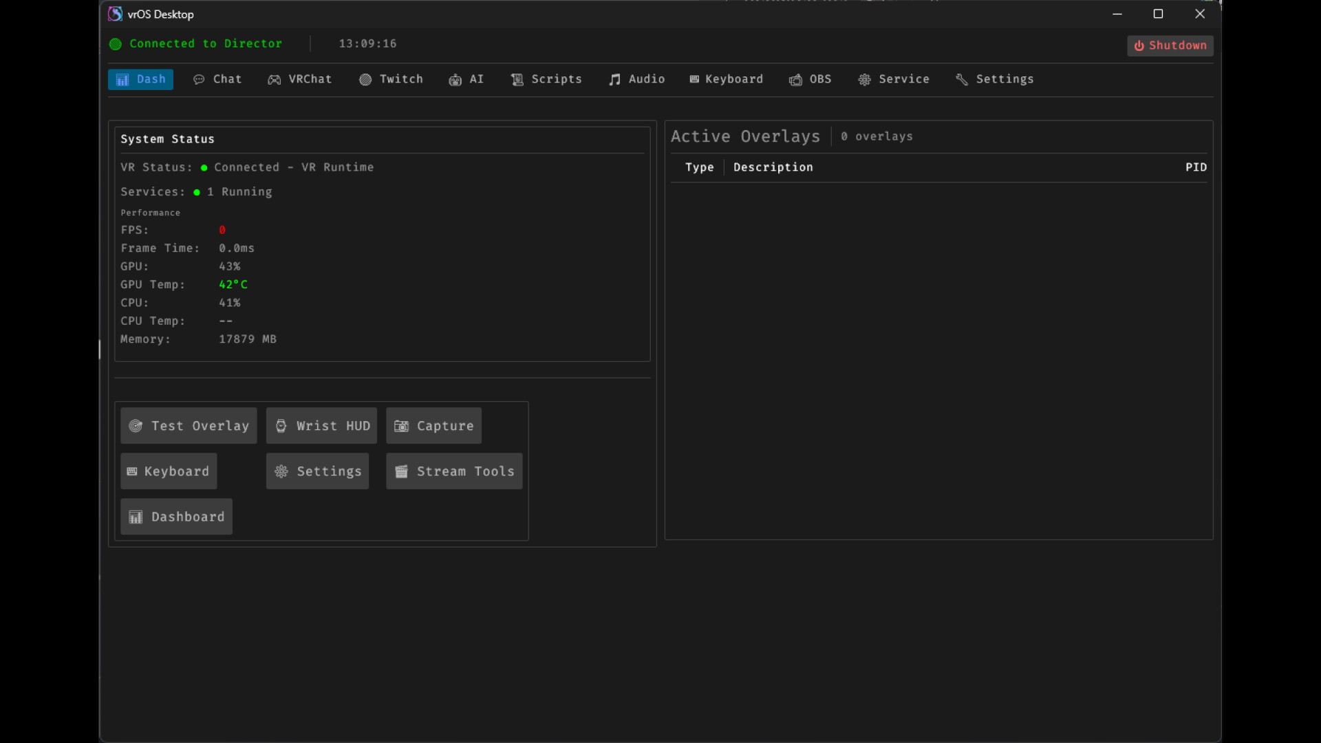We've built a complete application framework from scratch with maximum focus on the needs of real users, maximizing stability and long-running systems, allowing users to seamlessly swap between desktop mode and VR without a hitch.