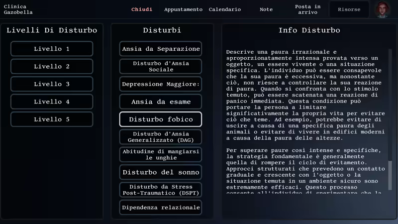 • Specializzazione e Progressione di Carriera: Inizia la tua carriera con la competenza per trattare 10 malattie di base. Guadagna punti esperienza (XP) per ogni sessione completata con successo. Accumula questi punti per sbloccare il trattamento di un totale di 25 malattie diverse ed espandi la tua area di competenza. Sta a te diventare lo psicologo più ricercato per i casi più difficili e rari.