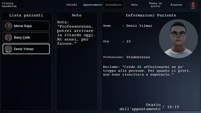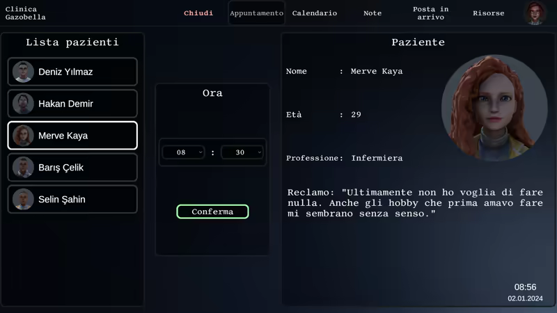• Gestione Strategica del Tempo e degli Appuntamenti: Qui, il tempo non si misura con un cronometro, ma con l'agenda degli appuntamenti. Mentre tratti un paziente, devi sempre tenere d'occhio l'orologio e l'appuntamento successivo. Ad esempio, devi finire di curare il paziente delle 8:00 prima che arrivi quello delle 12:00. Altrimenti, il cliente successivo non si presenterà e il tuo compito del giorno fallirà. Pertanto, la pianificazione degli appuntamenti e dei loro intervalli dipende interamente dalla tua strategia.
