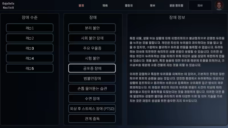 • 전문화 및 커리어 성장: 10개의 기본적인 질병을 치료할 수 있는 능력으로 커리어를 시작하세요. 성공적으로 완료한 모든 세션에서 경험치(XP)를 획득하세요. 이 포인트를 모아 총 25가지의 다양한 질병에 대한 치료법을 잠금 해제하고 전문 분야를 확장하세요. 가장 어렵고 희귀한 사례에서 가장 신뢰받는 심리학자가 되는 것은 당신의 손에 달려있습니다.