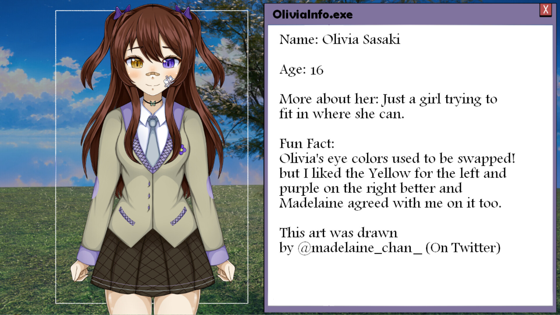 You play as Olivia Sasaki, a new student who moved to Japan all the way from America. Meet new friends and search for lost things, you might just end up finding yourself along the way!