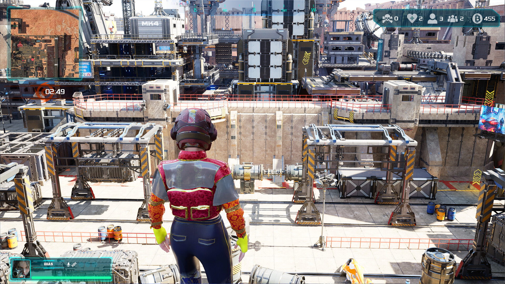 Your motorcycle will roar across the vast expanses of snow and ice in LEGEND BATTLES. In this GIF, the rider leaps over obstacles in the air to land on his two wheels and engage in a frantic race across this icy lake within the sci-fi space base. Note that this machine's stability is guaranteed, provided you know how to handle this sport bike well. This Battle Royale also offers uniformly colored skins, and in this case, white for the clothing, motorcycle, and weapons would be ideal camouflage for this Nordic environment.