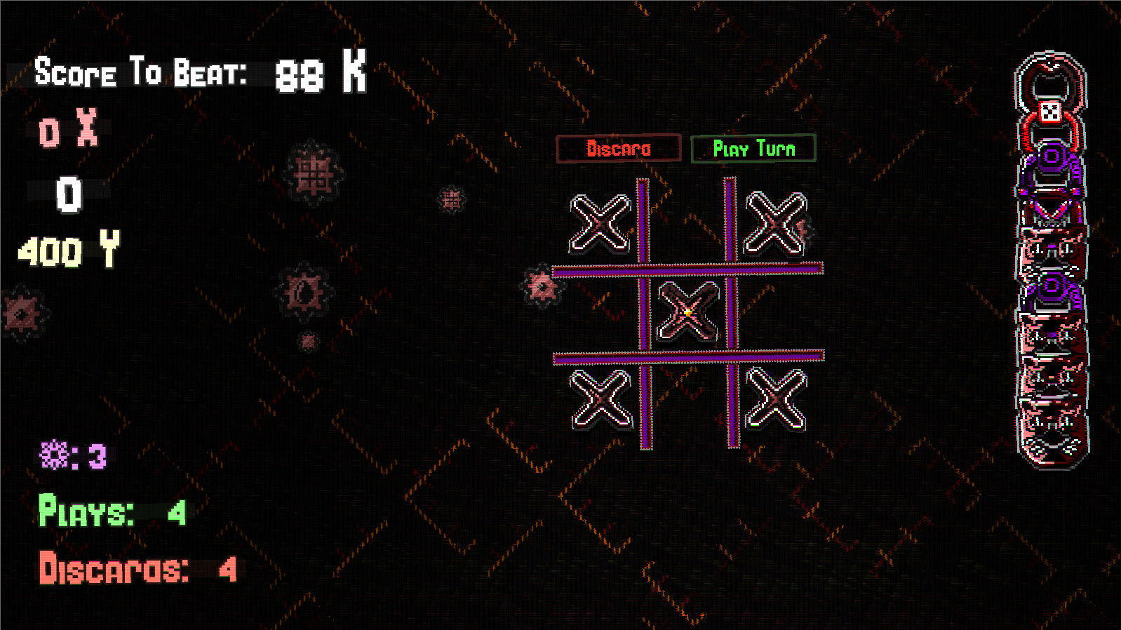 - Replay Tic-Tac-Toe over and over again... By traversing through a linear map scattered with tradeoffs and advantages. Every so often, you'll be personally challenged by an Oculus Eye... A Boss of sorts. Each boss has their own unique gimmick and requirements, with even the game board itself changing shape into a 4-4 grid?!