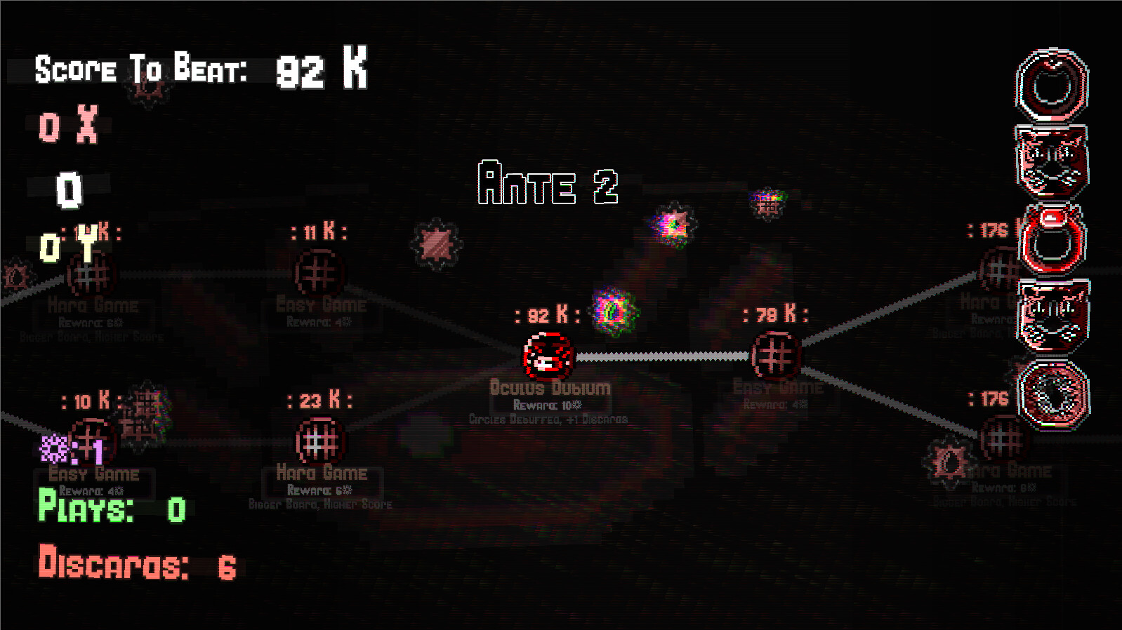 Nodosis is a tic-tac-toe-inspired rogue-like deckbuilder where you play an endless game of high-scores, tile synergies and mysteriously accursed rings. Score, Retrigger, Multiply, Modify, Win and Lose. It's up to you how you want to play this game, Nodosis. Willing to take the chance?