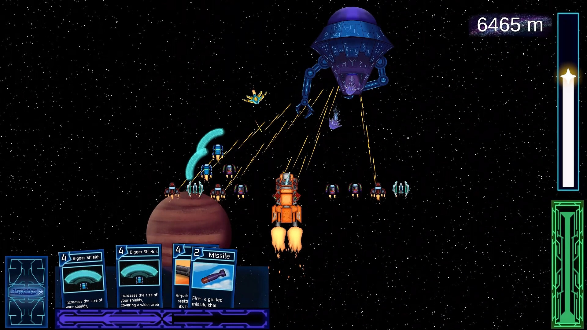 Din mission er klar: svæk moderskibets kontrol ved at ødelægge rumbaser. Hver sejr styrker dig, hvert nederlag lærer dig noget nyt.