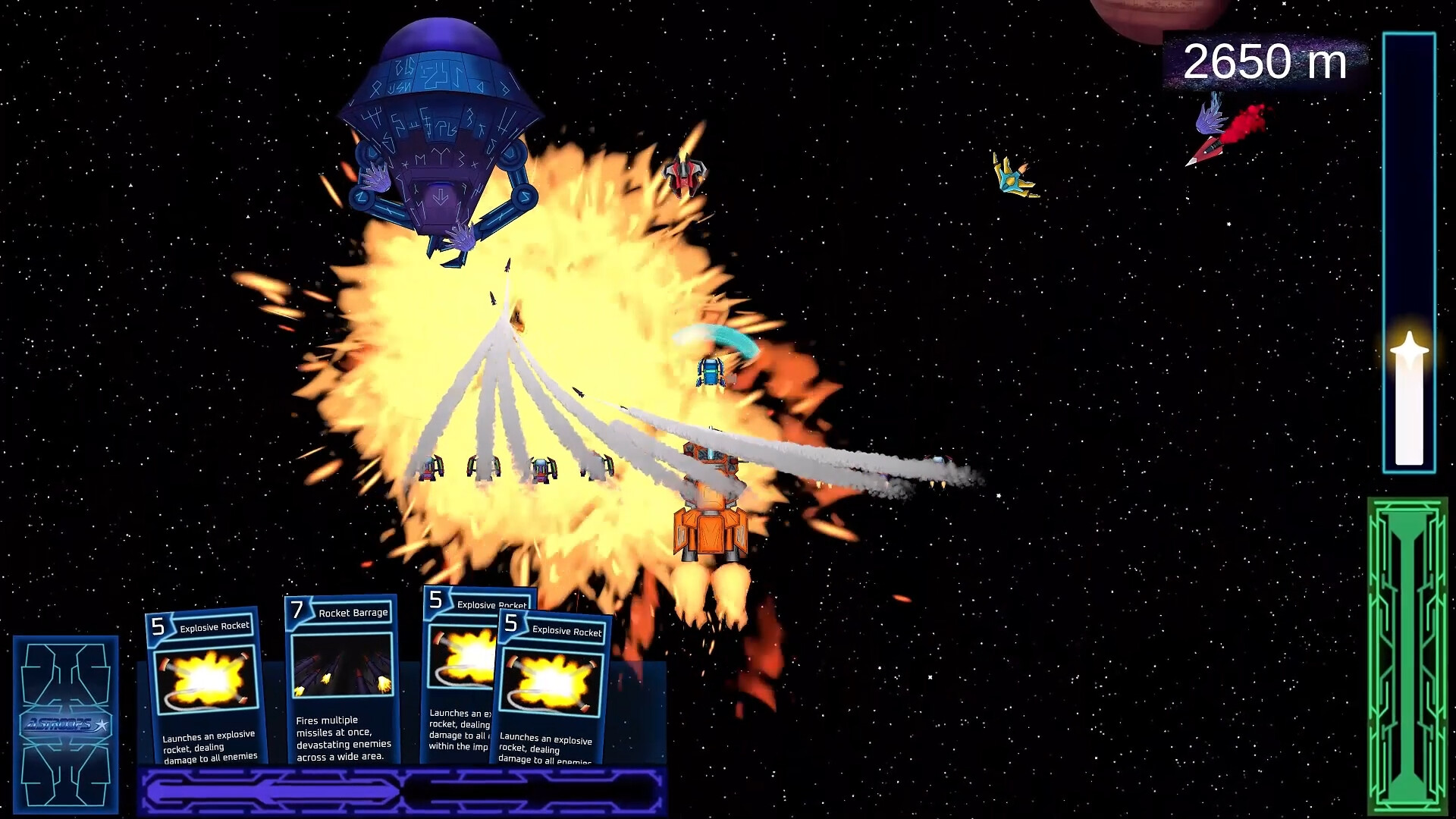Contrôlez votre fusée en temps réel, manœuvrez à travers des zones ennemies et déchaînez vos attaques.
