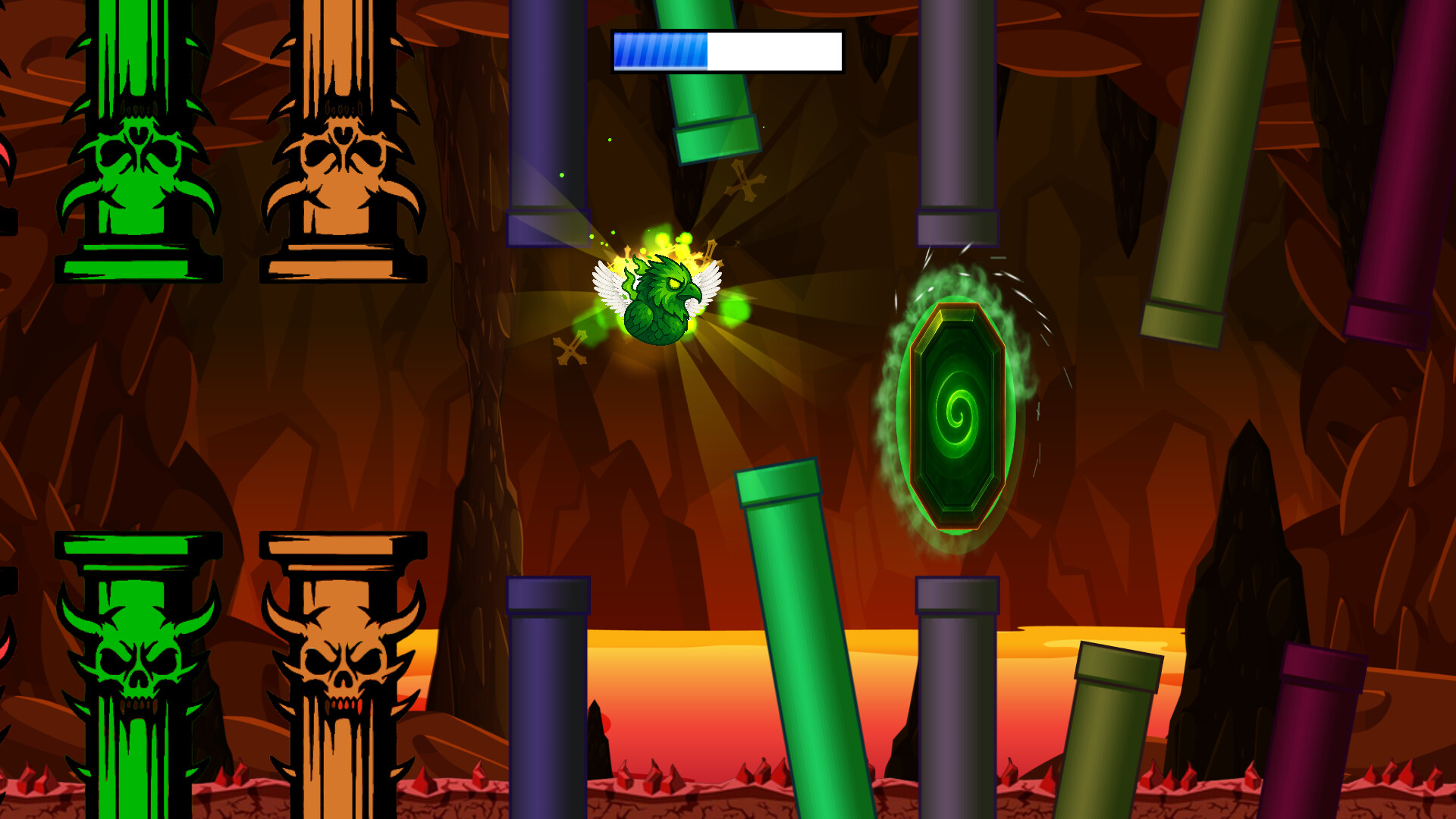 Soar through deadly obstacles in two intense modes: complete hand-crafted levels or go for the highest score in endless mode.