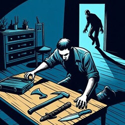 At the beginning, you are in your garage. You have no memory of the last few days. This happens when you don't get enough medicine. You send a letter to your friend to get some more. He sends you packages with medicine, mirrors, weapons and information. To kill the undead, from whose flesh he makes medicine for you. You load your pickup with the mirrors and choose your weapon.