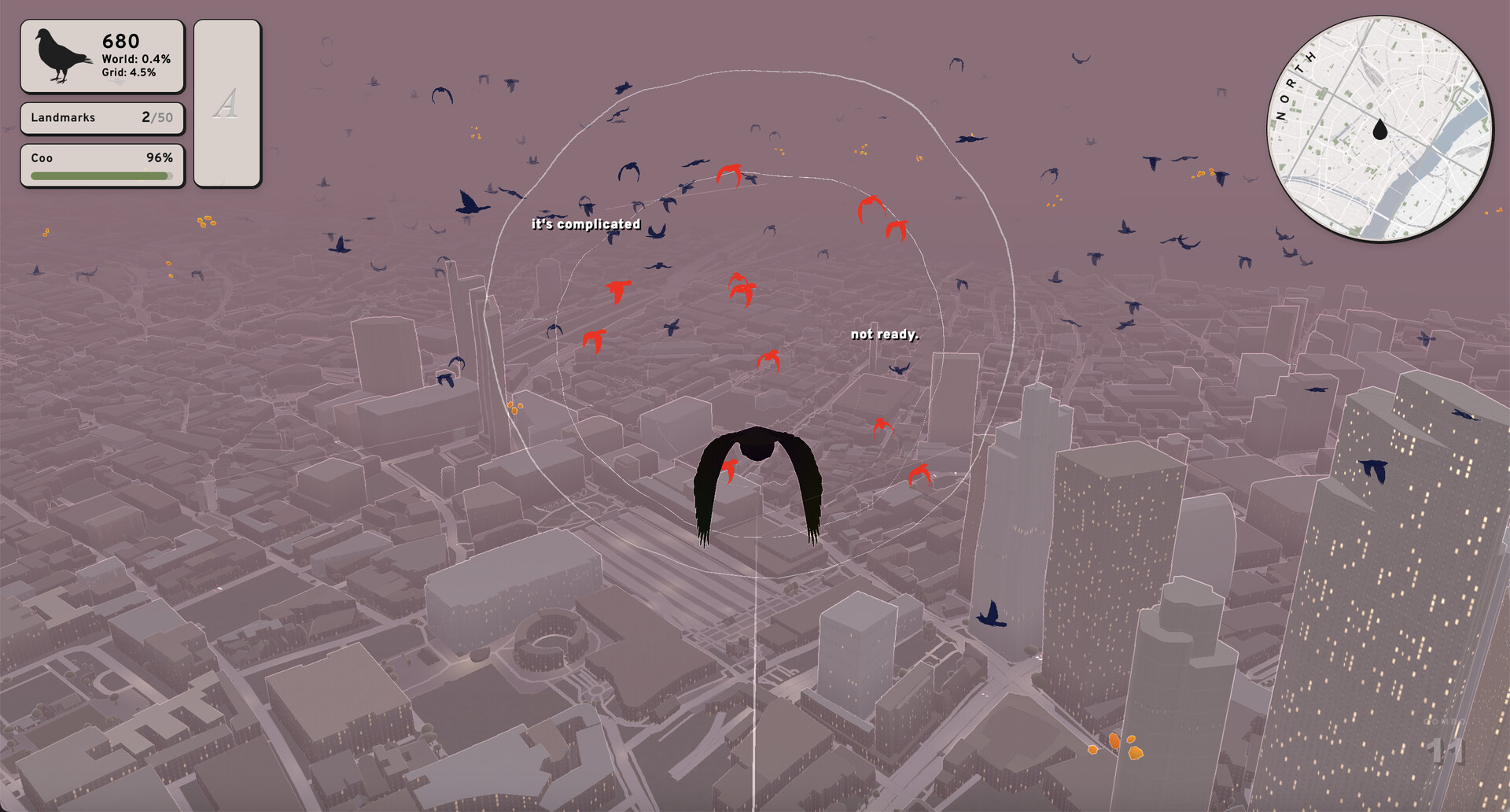 is a game where you soar across to-scale replicas of iconic cities in search of your pigeon-shaped soulmate.