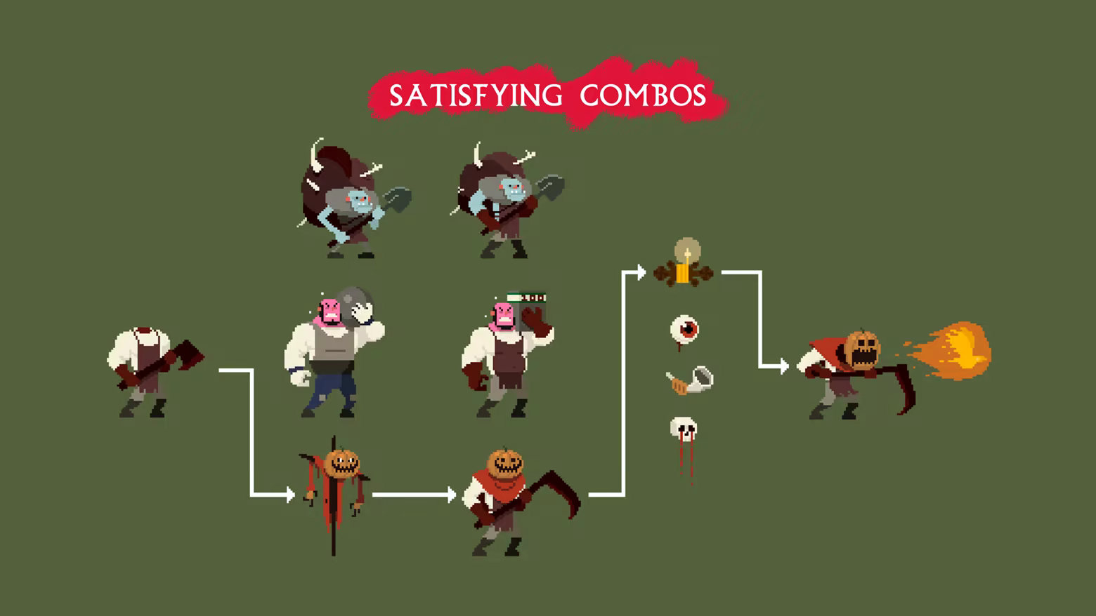 Our headless executioner will slice off heads and use them to solve clever challenges. You can also enhance heads with moonstone and combine them with your gear to craft unique strategies.