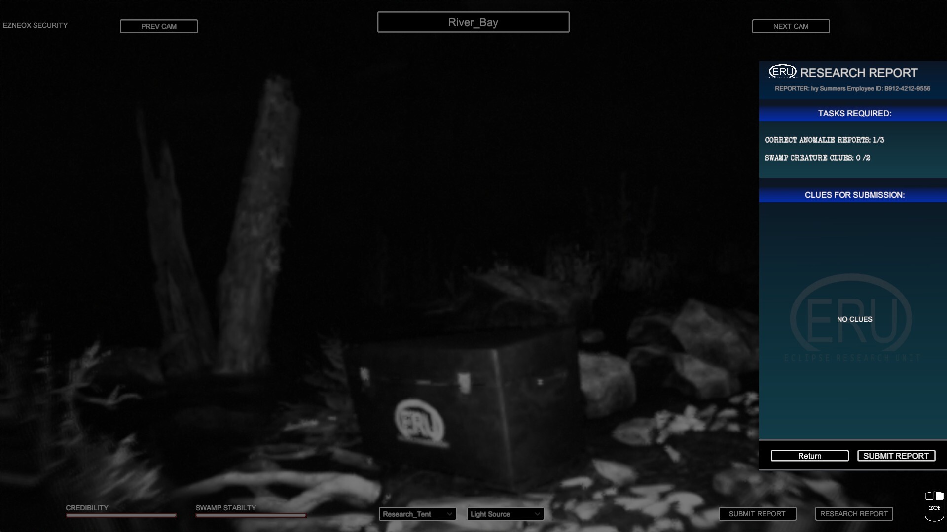Your shack isn't sturdy enough to withstand many attacks from the dwelling swamp creatures. For every correct anomaly reported grants you credit for upgrades. Improve your shack, researching tools, software's & cameras. Each night grows more unstable, and every report brings you closer to unraveling the truth behind the ERU and Ivy’s connection to it.