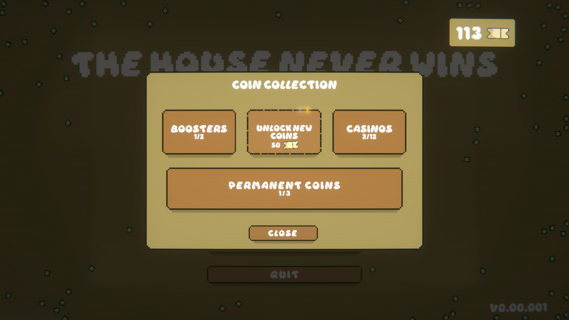 Earn tickets from bankrupting casinos, and use tickets to purchase coin rolls, which give you a chance of unlocking new coins!