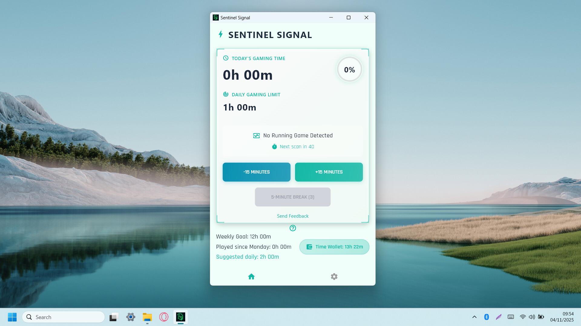 Sentinel Signal is a software created to help you manage your gaming sessions. Enjoy your games without interfering with your weekly needs and responsibilities.