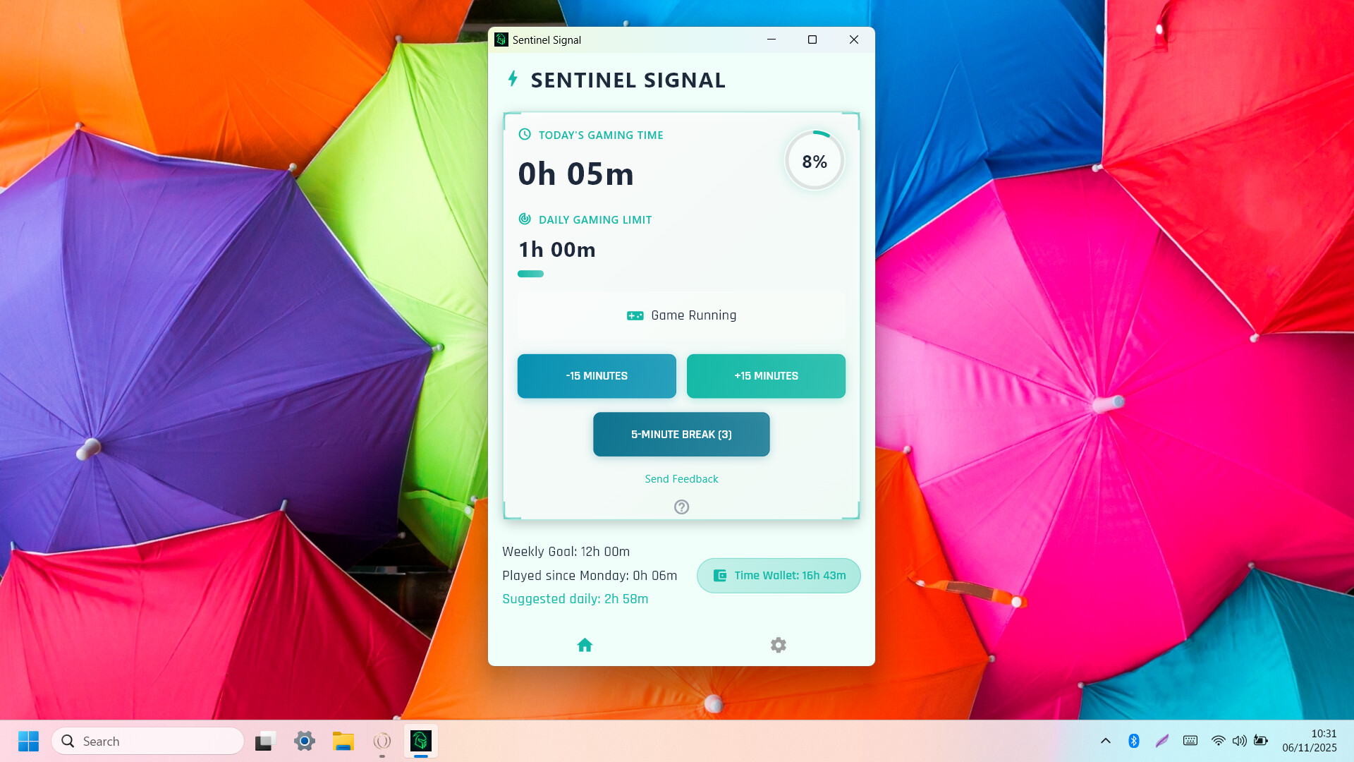 Sentinel Signal is a software created to help you manage your gaming sessions. Enjoy your games without interfering with your weekly needs and responsibilities.