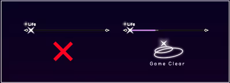 If you finish the song with some life remaining, it will count as cleared. Pay attention to your life and try to complete each stage!