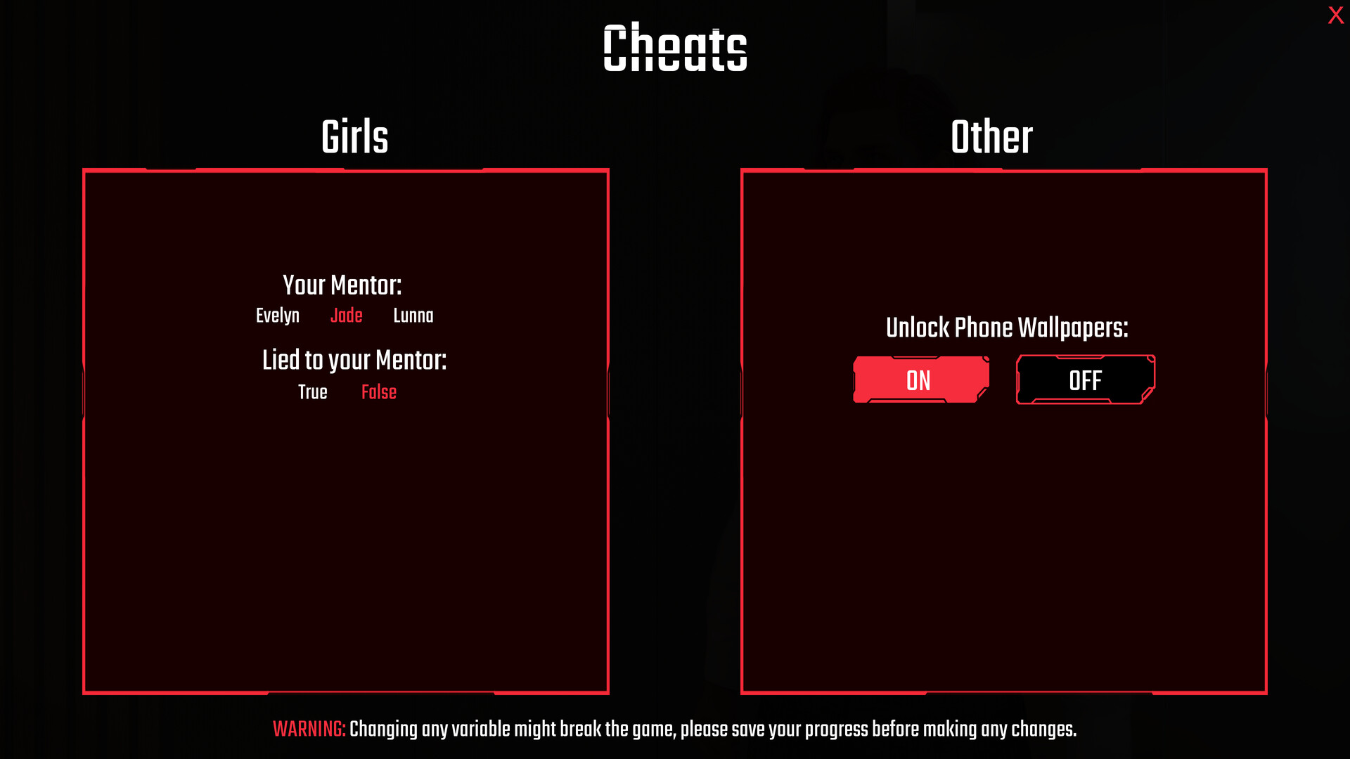 • In-game cheats to control variables, points and flags for character interaction, to open up unexplored routes.