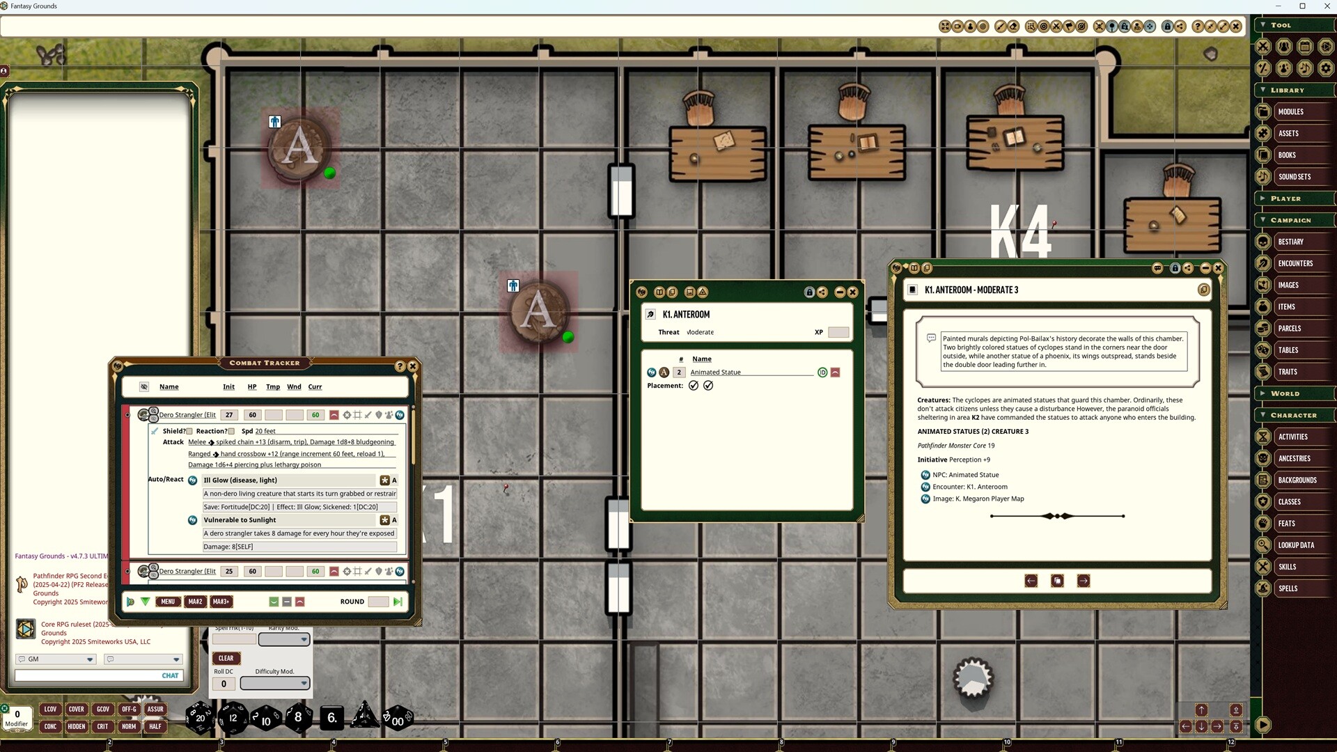 Requires: The free Fantasy Grounds virtual tabletop (VTT) software and the included Pathfinder 2.0 ruleset.