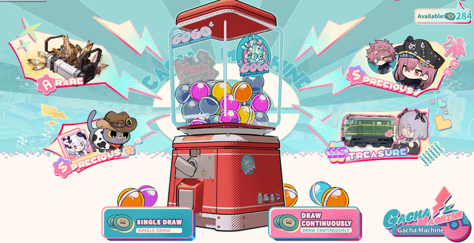 By participating in RUMBLING MONOPOLIS, Conductors can obtain Gacha Coins, which can be used at the Gacha Machine to draw rewards across four tiers: Casual, Rare, Precious, and Treasure. The prize pool includes Chaos Stones, Laplace Protocols, limited pets, Conductor outfits, limited avatars, and more. You can also earn the Commemorative Pack: RUMBLING MONOPOLIS, featuring a collection of unique cards—collect them to unlock additional rewards and achievements (more details will be announced in future updates).