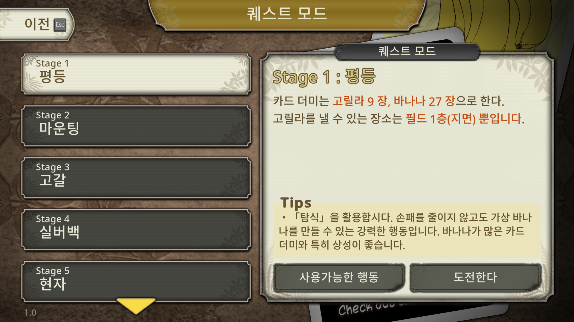 고릴라 무리를 키우다 혼자 카드 게임 바나나가 끊어지면 끝