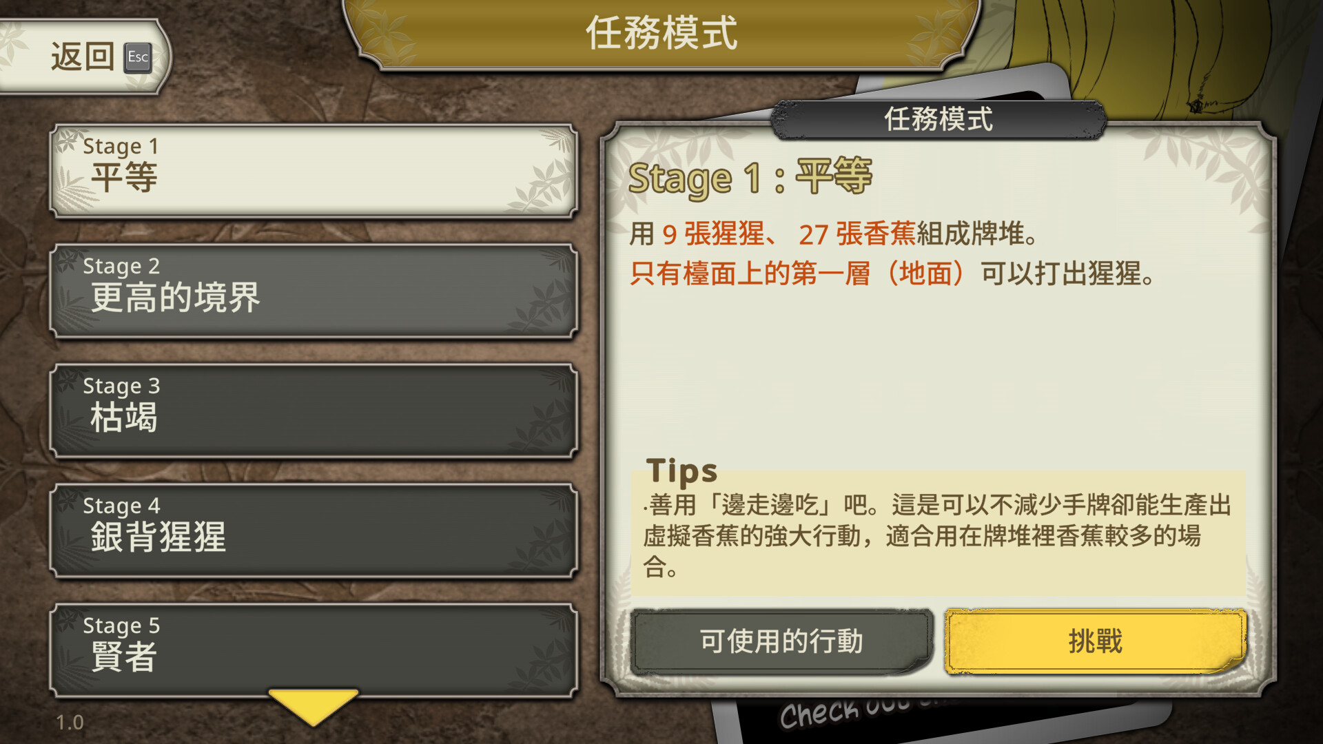 飼養大猩猩群 單人卡牌遊戲 香蕉吃完了,遊戲就結束了