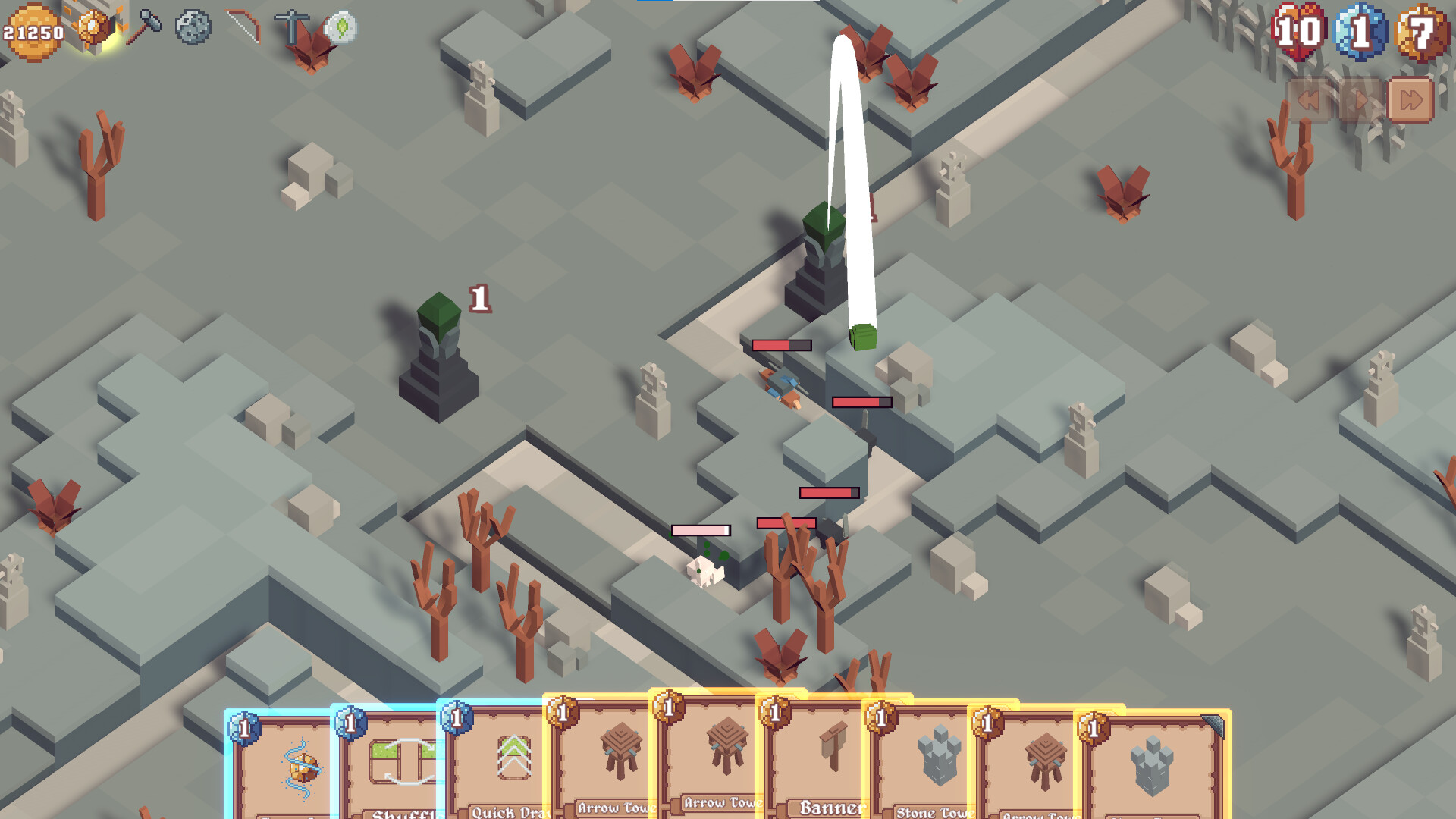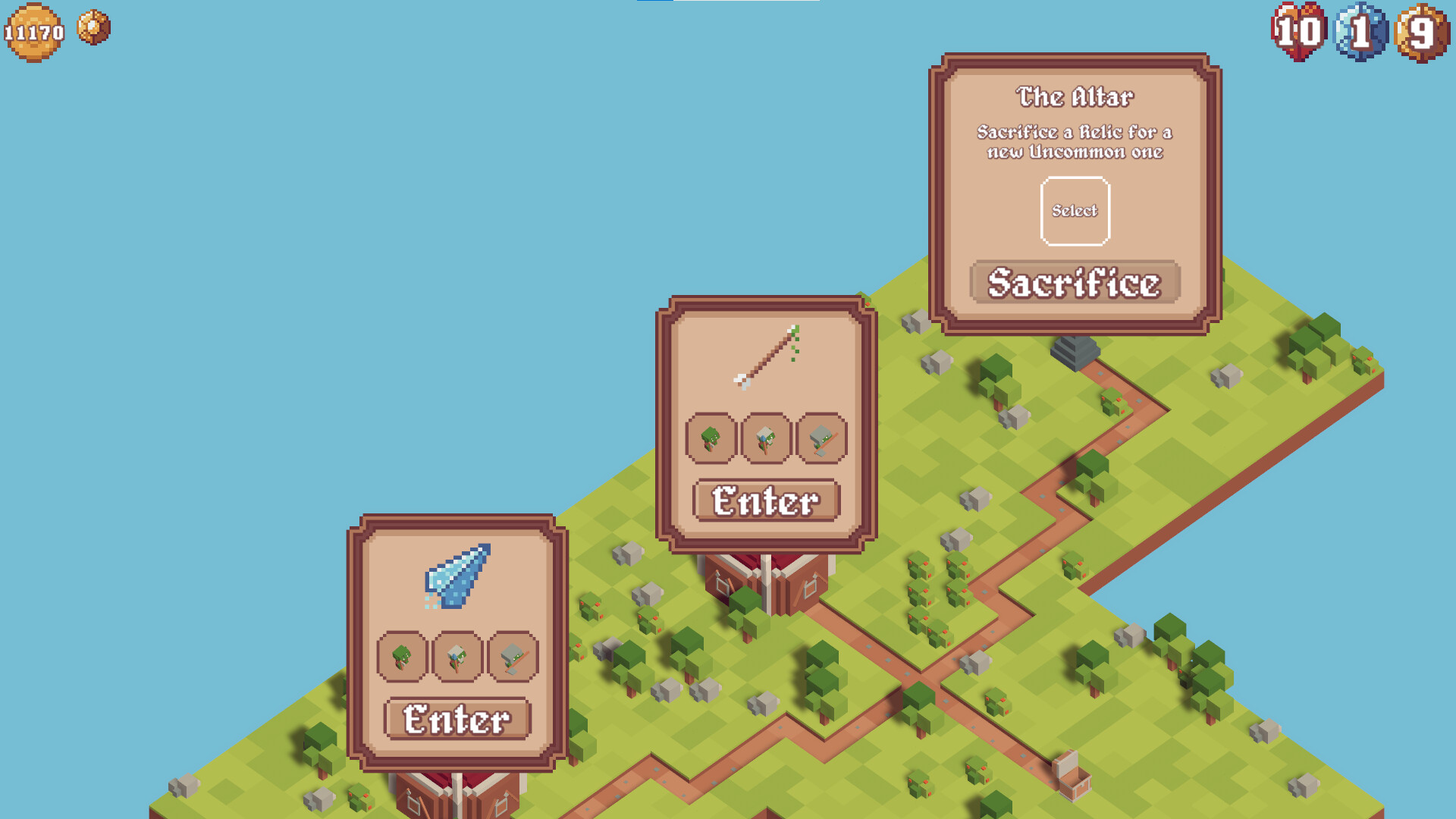 Gather Relics from fallen Enemy Camps to enhance your Towers, Units or weaken your enemies. Relics come in various rarities, on your travels you may find Altars where you can sacrifice Relics to receive ones with higher rarity.