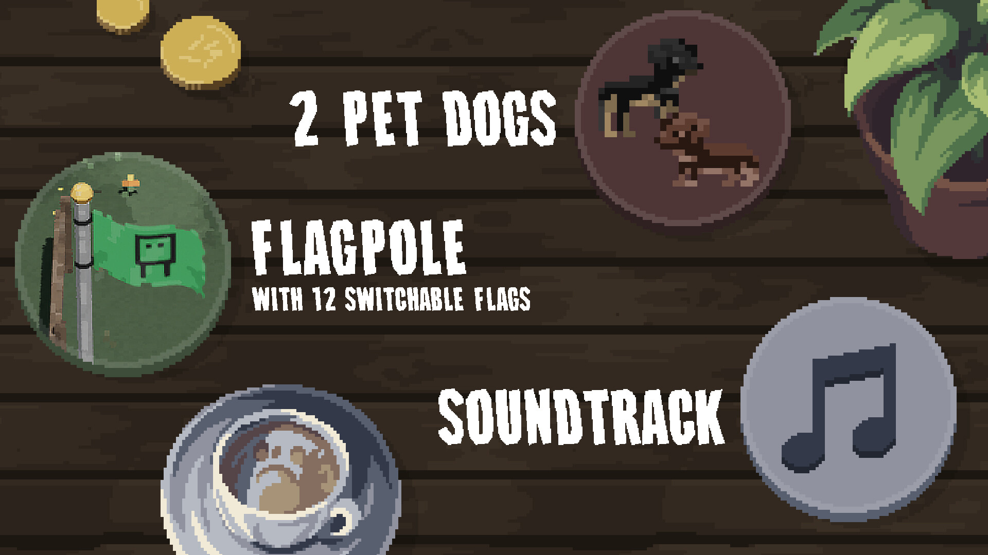 • Two Pet Dogs: Pick from two adorable dog companions that will hang out in your base. They don't fight zombies, but they'll keep you company on your deadly journey.