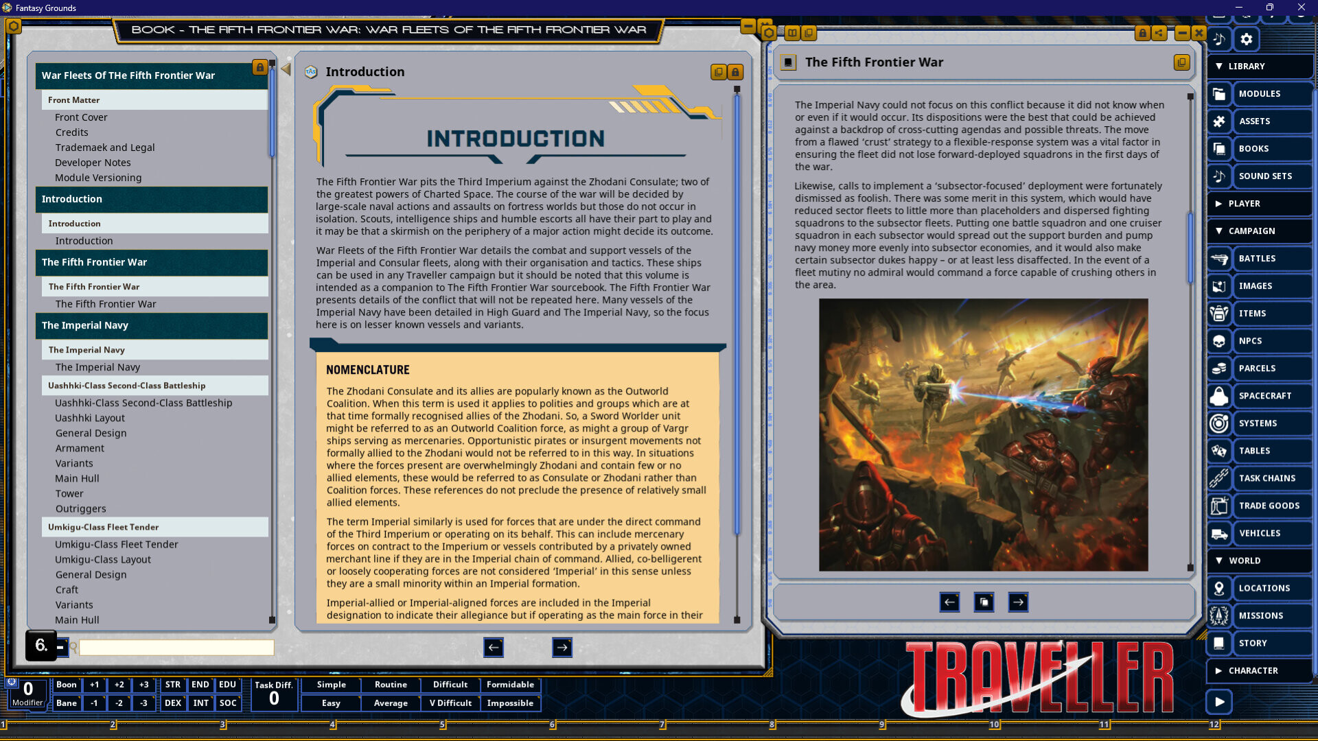 Requires: The free Fantasy Grounds virtual tabletop (VTT) software and a one time purchase of the Traveller 2E (Mongoose) ruleset.