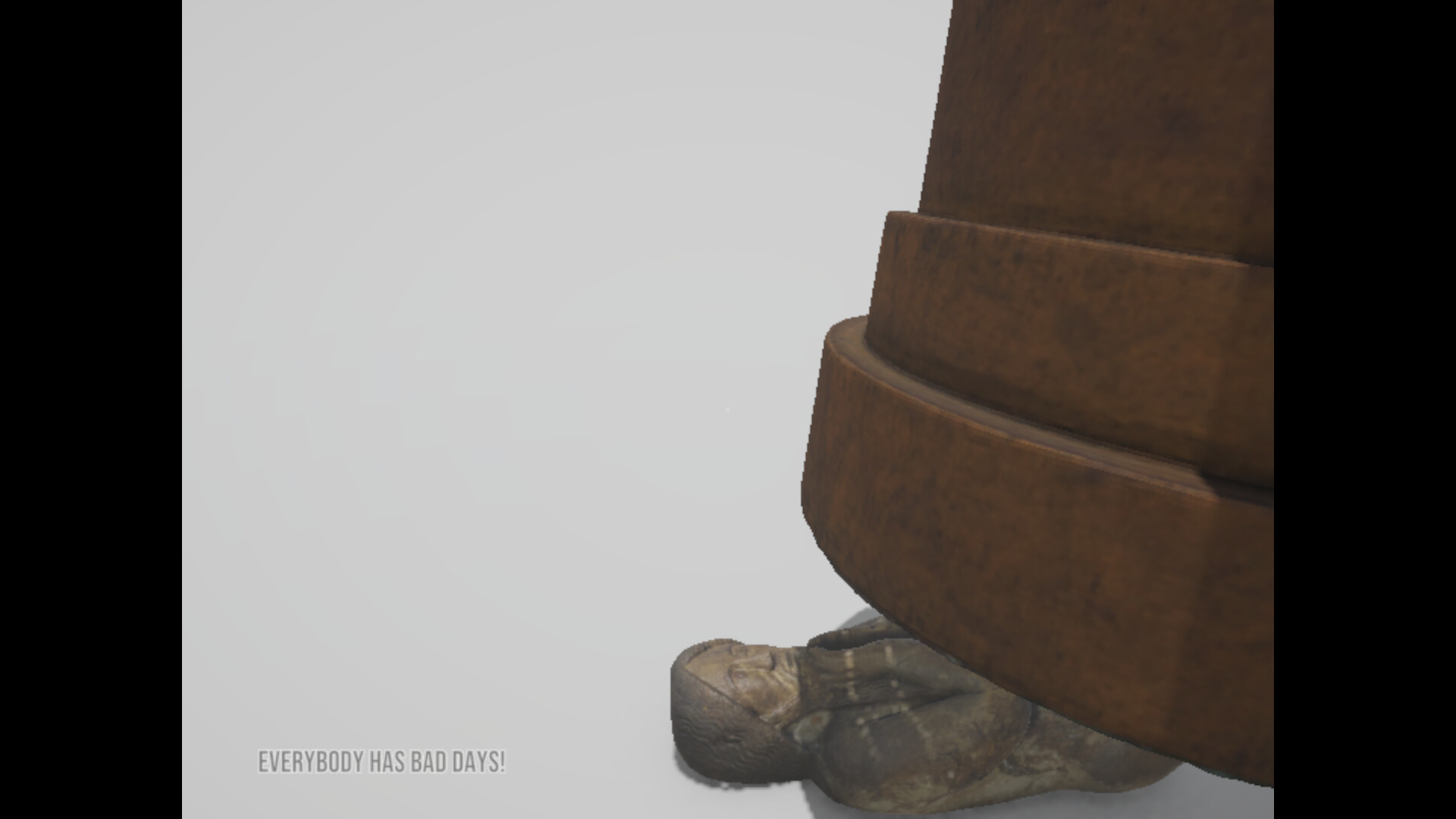 FOR GOD'S SAKE, HELP HIM! is a tiny, surreal first-person art "game" about what it's like. your goal is singular and simple: try to help him, however you can... if you can. that's a tall order considering you're both in a blank void and he's being crushed over and over.