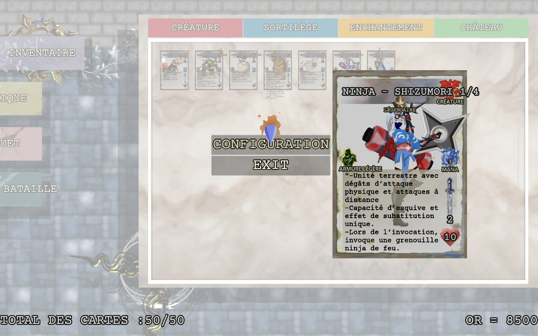Entrez dans le jeu, devenez le mage suprême, achetez frénétiquement des cartes et des châteaux, invoquez diverses créatures et lancez de puissants sorts en combat.